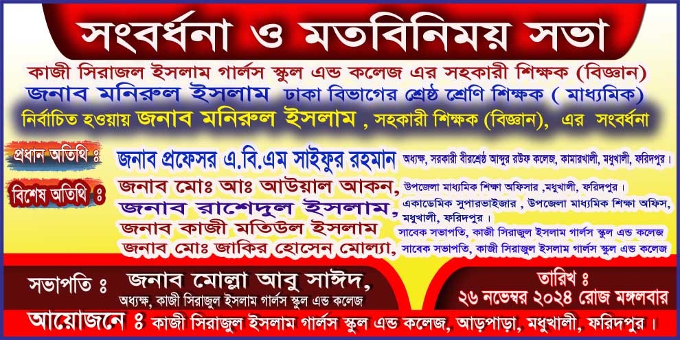কাজী সিরাজুল ইসলাম গার্লস স্কুল এন্ড কলেজ,আড়পাড়া, মধুখালী, ফরিদপুর।