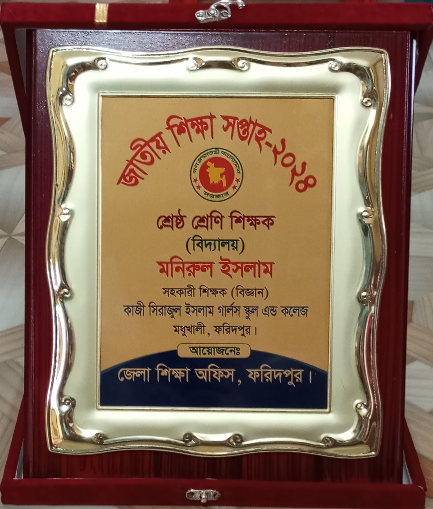 ***   বাংলাদেশ তথ্য ও যোগাযোগ প্রযুক্তি মন্ত্রনালয়ের আইসিটি ডিভিশন,ঢাকা এর A2i জেলা অ্যাম্বেসেডর শিক্ষক নির্বাচিত হওয়ায় জনাব মনিরুল ইসলাম,সহকারি শিক্ষক(বিজ্ঞান) কে ---কাজী সিরাজুল ইসলাম গার্লস স্কুল এন্ড কলেজ এর পক্ষ থেকে অনেক অনেক শুভেচ্ছা ও অভিনন্দন....   ***     ***   ঢাকা বিভাগের শ্রেষ্ঠ শিক্ষক নির্বাচিত হওয়ায় ২৬, নভেম্বর ২০২৪ ইং কাজী সিরাজুল ইসলাম গার্লস স্কুল এন্ড কলেজ, আড়পাড়া(আমার শিক্ষা পরিবার) কর্তৃক গণসংবর্ধনা প্রদান করে   ***     ***   ঢাকা বিভাগের শ্রেষ্ঠ শিক্ষক নির্বাচিত হওয়ায় ২৩, নভেম্বর ২০২৪ ইং তারিখে ফরিদপুর খেলাঘর কর্তৃক গুণীজন সম্মাননা প্রদান করে   ***     ***   বিভাগীয় পর্যায়ে গুণী শিক্ষক নির্বাচিত হওয়ায় মধুখালী উপজেলার শিক্ষা পরিবার কর্তৃক সম্মাননা স্মারক গ্রহণ   ***     ***   ঢাকা বিভাগের “গুণী শিক্ষক” নির্বাচিত   ***     ***   .....ফরিদপুর জেলার শ্রেষ্ঠ শ্রেণি শিক্ষক (মাধ্যমিক ) এর পুরষ্কার গ্রহণ...   ***     ***   .....ফরিদপুর জেলার শ্রেষ্ঠ শ্রেণি শিক্ষক (মাধ্যমিক ) এর পুরষ্কার গ্রহণ...   ***     ***   উপজেলা পর্যায়ে শ্রেষ্ঠ শ্রেণি শিক্ষক পুরষ্কার গ্রহণ   ***     ***   জাতীয় শিক্ষা সপ্তাহ -২০২৪   ***     ***   ফরিদপুর জেলার শ্রেষ্ঠ শ্রেণী শিক্ষক নির্বাচিত   ***